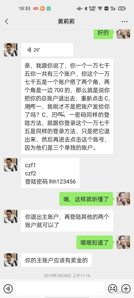 在3月22号黄莉莉把我邀请到河南三门峡翔腾公司参观他们的公司参加他们的会议后,3月23号在她的鼓动之下,又向她转账1400元,一个分账号700元,一共2个账号,这就是一个金字塔的3角型,她和我说这是公司的模式。