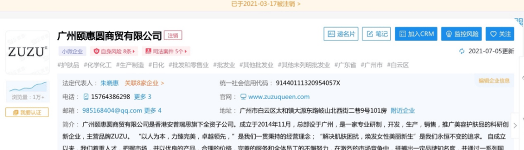 企查查上显示,广州颐惠圆商贸有限公司于今年3月17日正式被注销。