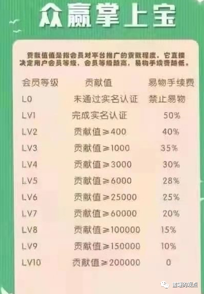 交易需要完成实名认证,否则无法交易,等级越低,易物(交易)手续费就越高(最高可达50%)。