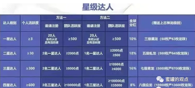 推广就能获得“达人分红”,总共4个级别,推荐的人数越多,奖励的龙珠(积分)越多,妥妥的变相传销模式。