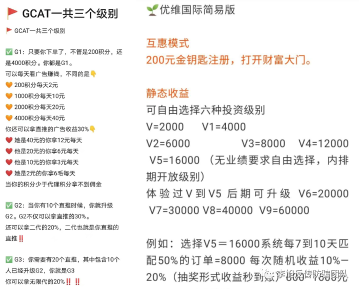 ▲上图为GCAT平台与优维国际资金盘模式对比