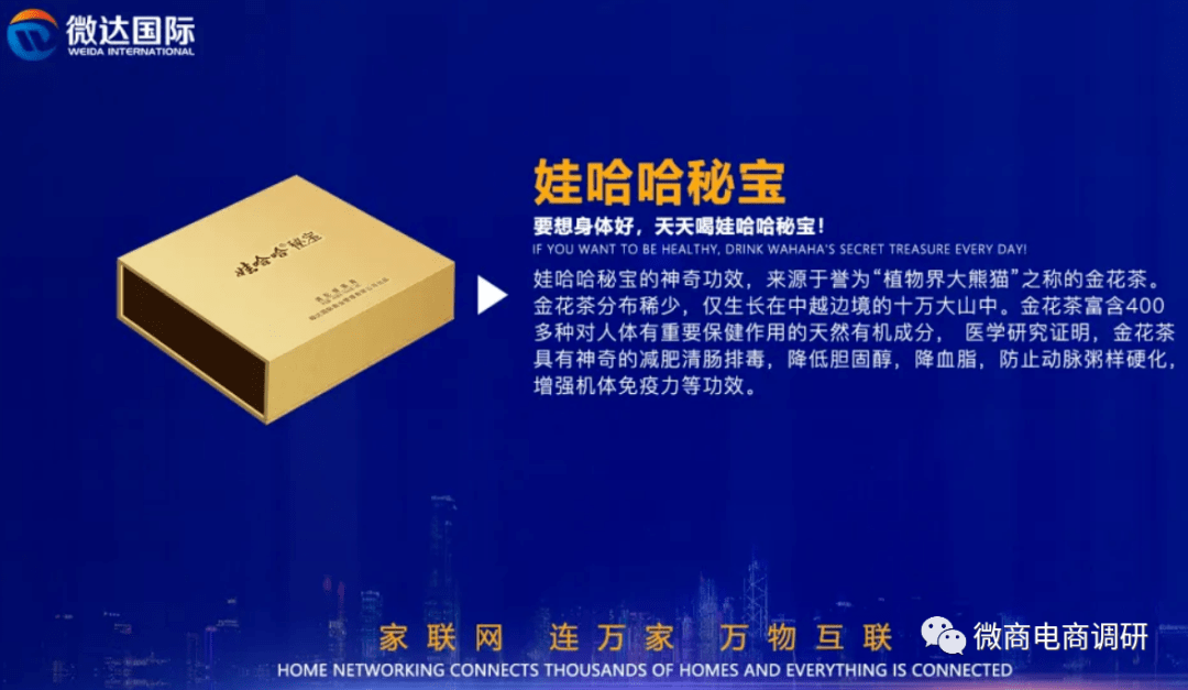 在本篇报道中,我们了解到了微达国际实控人瞿福学的过往经历,以及围绕着娃哈哈秘宝到底有什么故事可讲,在下篇报道中,我们将着重关注的是微达国际现行的模式有何特点,请继续关注微商电商调研。