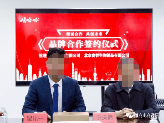 2020年5月30日,瞿铭一与娃哈哈集团正式签约的图片可谓铁证如山,不过实际上,和娃哈哈公司达成合作是北京赛智生物制品有限公司,并非微达国际。