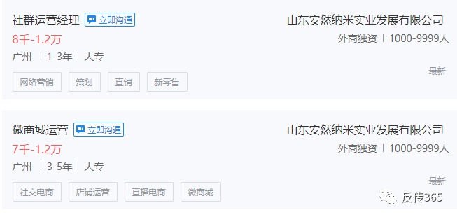而在某招聘网站中,身处山东威海的山东安然纳米实业发展有限公司最近也开始在广东广州黄埔区就社群运营经理、微商城运营、新零售培训经理等职位进行了公开招聘。