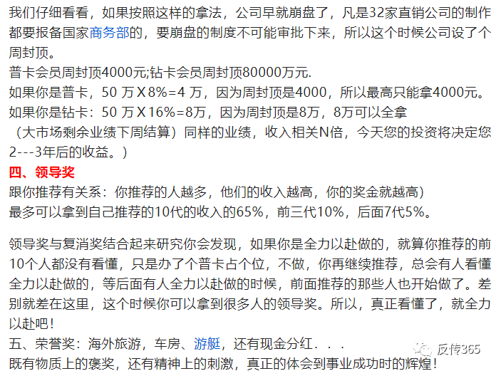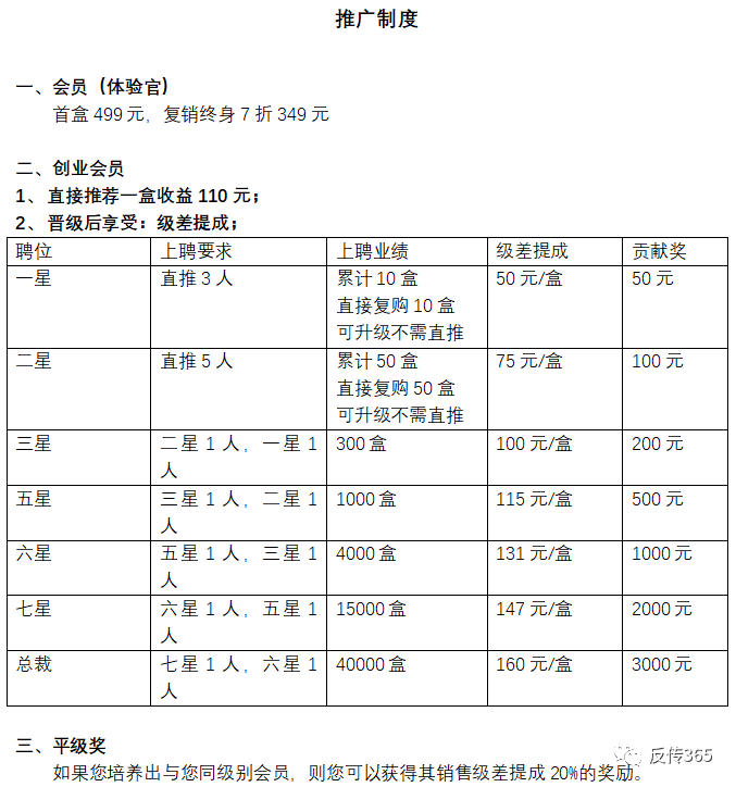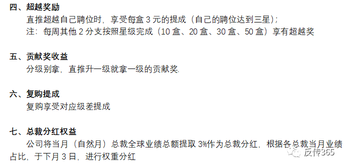 本篇的最后,我们再来关注一下肌樱现行的奖金制度。另据某经销商小白(化名)提供的资料显示如下: