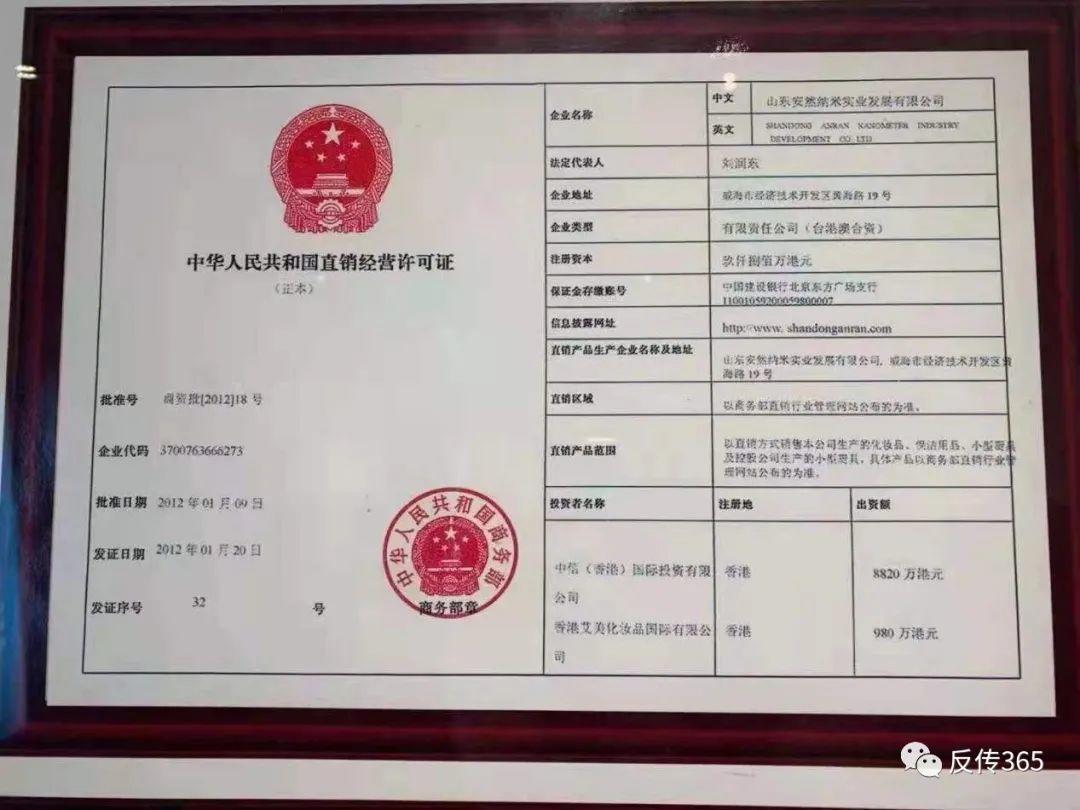 而在肌樱经销商的朋友圈中,我们也看到了直销企业安然的直销牌照。