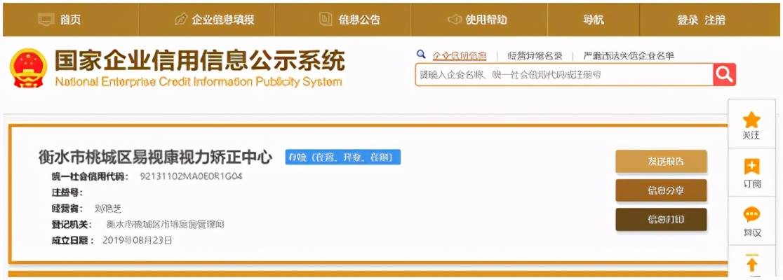 经“国家企业信用信息公示系统”查询衡水市桃城区易视康视力矫正中心为个体工商户。