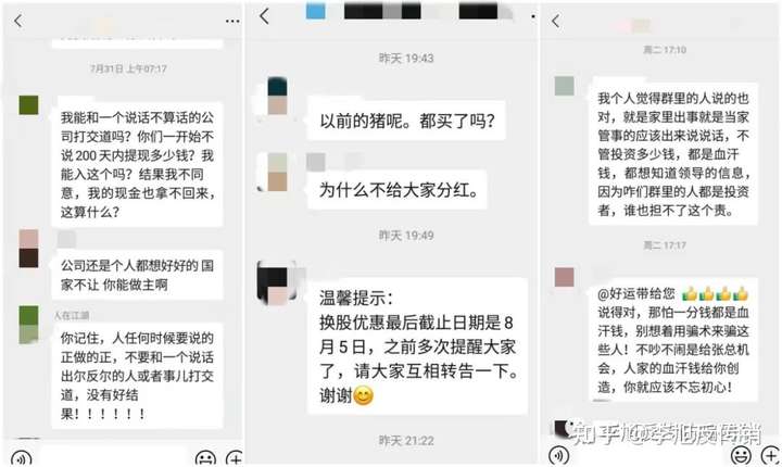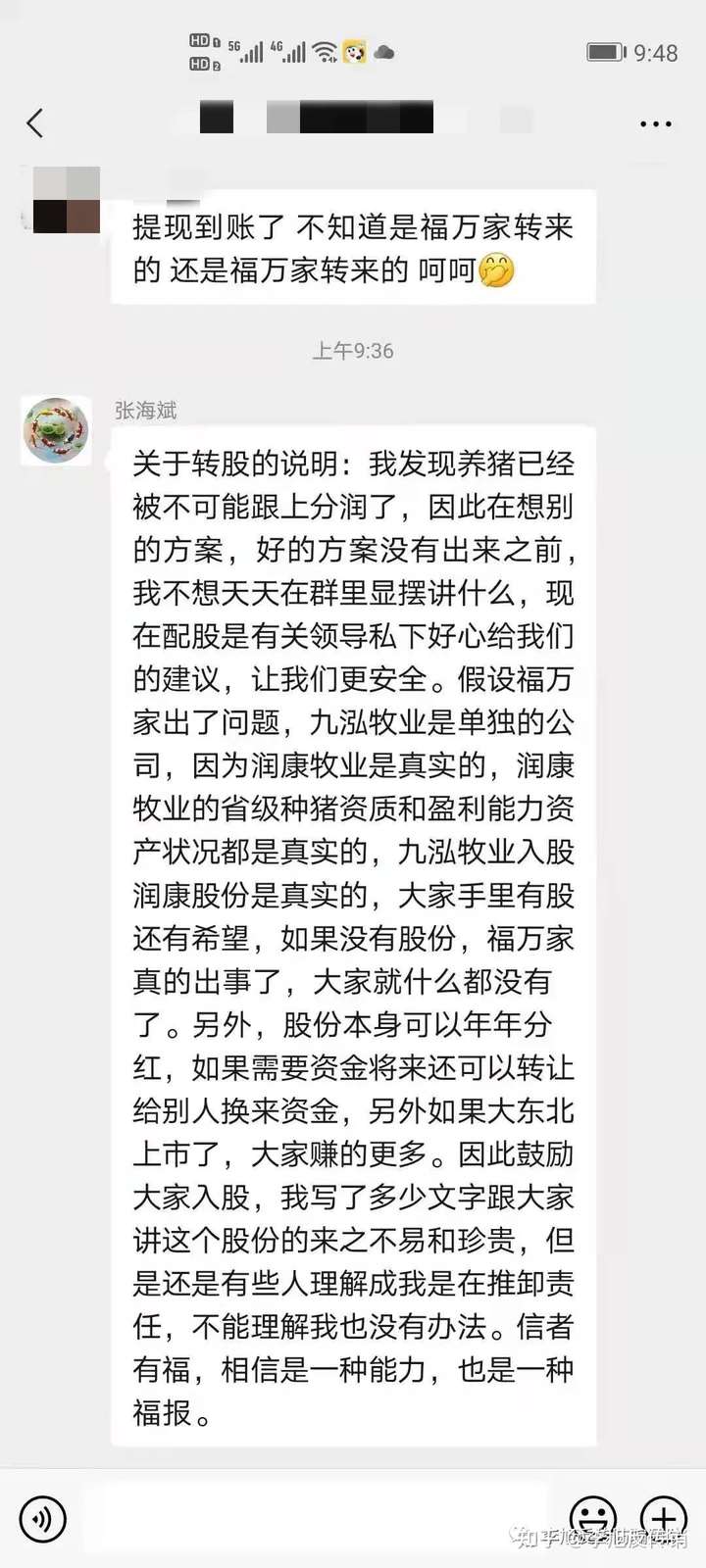 近日,张海滨(福万家合作社老总)在微信群内喊话,关于转股是因为发现养猪已经跟不上分润,所以为了保证大家的利益开始寻求别的方案,这个方案就是转股。