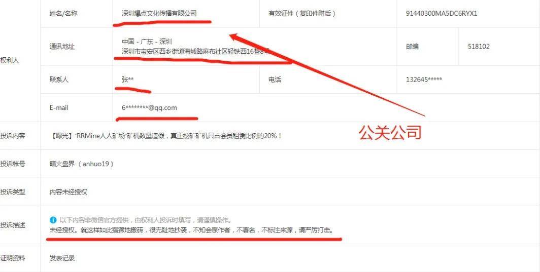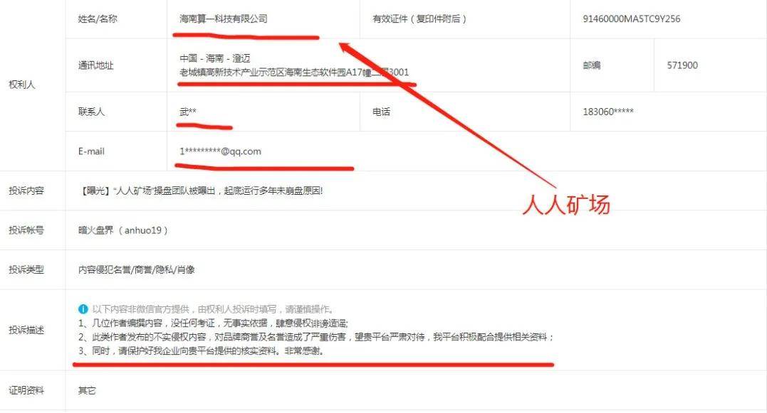 最近几天,“人人矿场”可是闹得沸沸扬扬。首先是人人矿场被自媒体曝光是资金盘骗局;矿机数量造假,真正挖矿矿机只占会员租赁比例的20%。然后人人矿场为掩盖其犯罪事实与证据,雇佣专业公关公司对自媒体进行疯狂投诉。