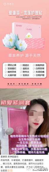 据了解,爱康菲有蜂胶抑菌凝胶、雪莲护理贴、男神能量饮、初爱紧致套盒等多款产品,与之前的译青春别无二致,只是在包装、品牌名上进行了调整和更改,而这些产品,也被爱康菲宣传成了能解决各种妇科疾病的神物。