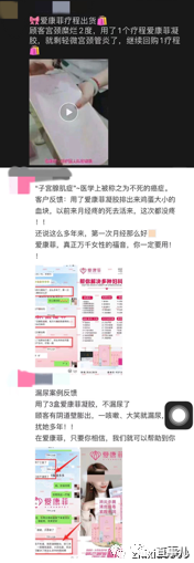 除此之外,我们能看到经销商分享在朋友圈的各种使用反馈:有用户之前是宫颈糜烂2度,使用了爱康菲凝胶1个疗程以后,就只剩轻微宫颈管炎;还有用户使用后改善了自己的子宫腺肌症;还有人反馈用了爱康菲凝胶3盒后,解决了困扰多年的漏尿问题。