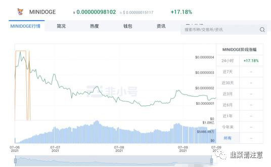 MiniDoge在抹茶下架后价格随即上涨,此后经历波动,24小时涨幅为17.18%。