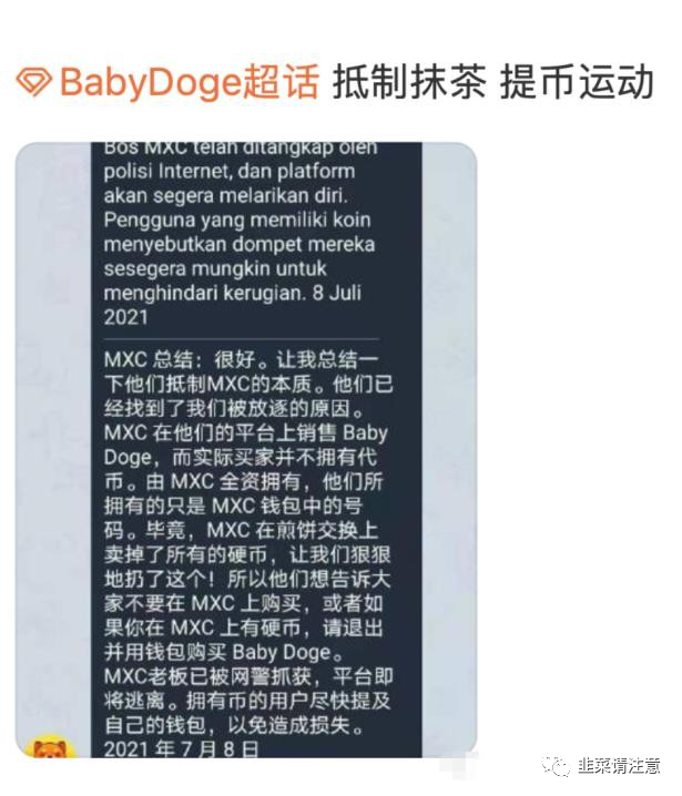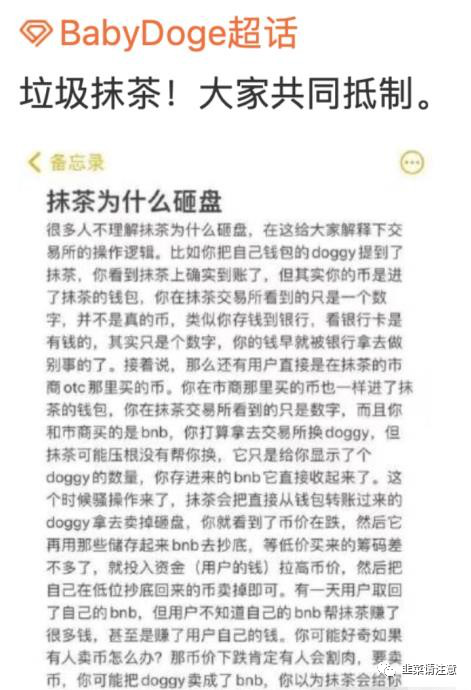 MiniDoge和BabyDoge社区呼吁用户,不要在抹茶交易所交易,原因是交易所涉嫌用用户资产砸盘。