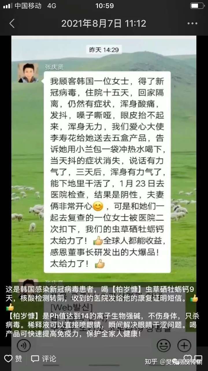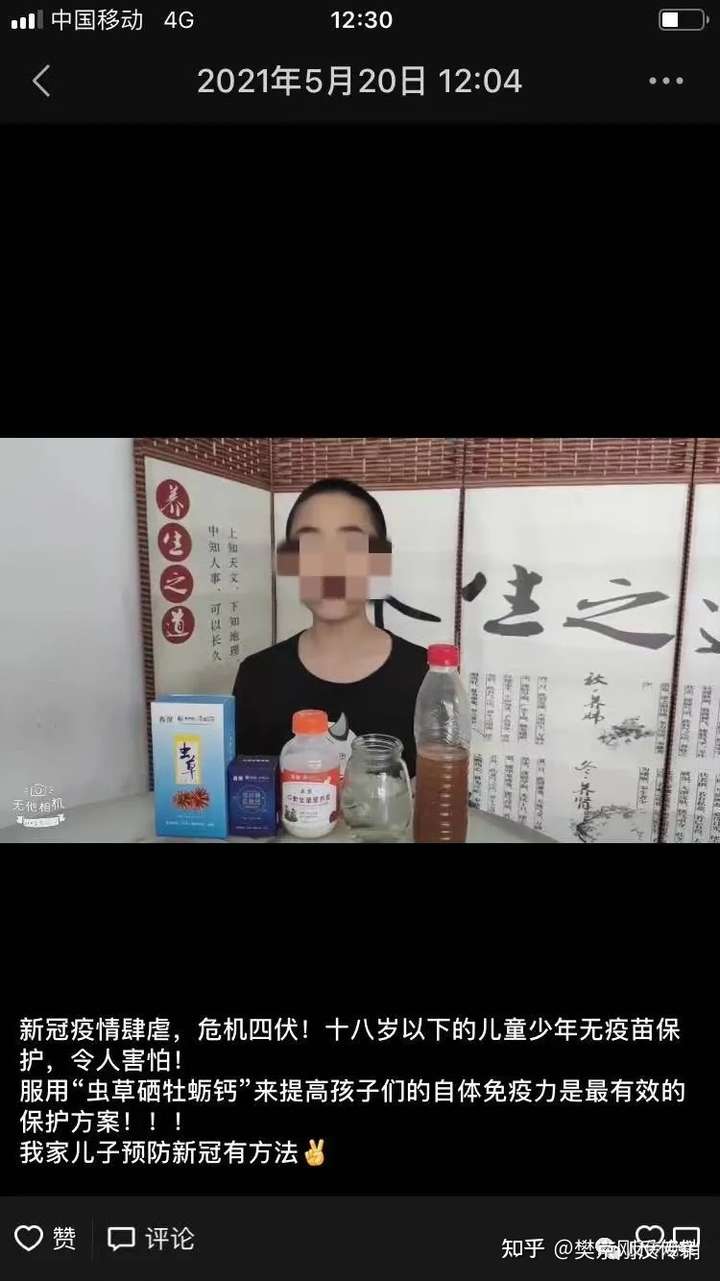 同时在另一位代理商唐老师的朋友圈里宣称新冠疫情肆虐,18岁以下的未成年人无疫苗保护,是通过以上视频方式来提高免疫力,抵抗新冠疫情的。在全世界都在被新冠病毒为难的情况下,一盒食品既然能有如此大的功效,是有多神。宣称救人于疾苦的伟大事业,积累功德的好机会是何居心。