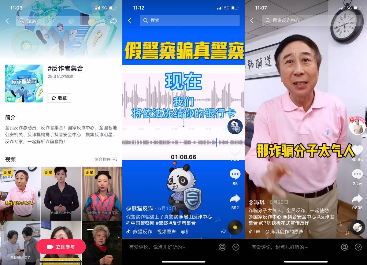 图:抖音上大量的反诈话题内容