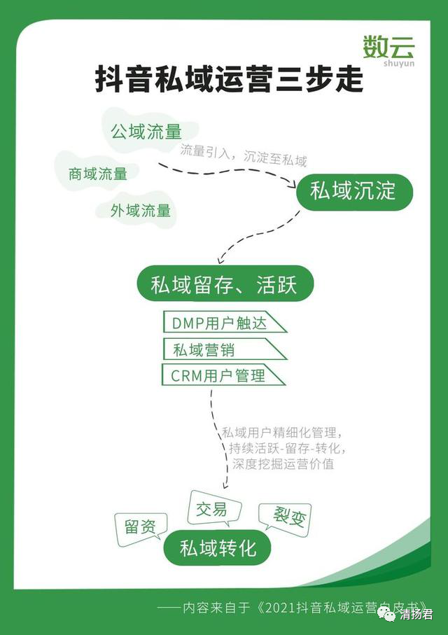 另外,在最新公布的抖音企业号2.0中,我们看到了私域沉淀、私域留存和活跃、私域转化的“三步走”方法论。