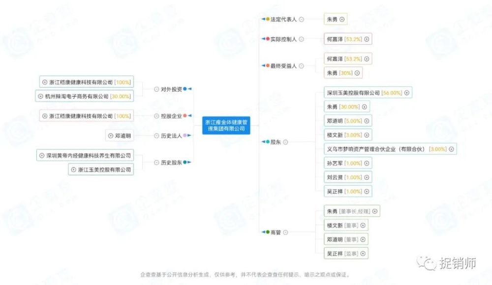 根据企查查APP数据显示,浙江瘦金体成立于2017年12月26日,法人朱某,持股30%;大股东深圳玉美控股有限公司持股56%。根据其官网显示,浙江瘦金体旗下拥有“瘦金体”、“智力树”等品牌,主要产品包括:瘦金体复合蛋白营养素、瘦金体高纤益生元复合、瘦金体胶原蛋白等固体饮料。