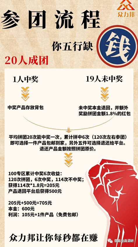 对于众力邦所推行的上述模式,我们也联系到了行业专家对其进行分析,该专家认为:“这种制度具有打着拼团名义、拉人头、多层次等特点。”该专家还特别提醒:“十拼三或七拼二,拼中给商品,不中给出资额的5%—8%红包奖励。这类的是相对靠谱的。凡是给的红包奖励低,必然是把资金挪到后面多层次团队计酬的奖金拨比去了,而且也不关注产品的品质和更换频率,就是一个打着拼团名义的传销盘或者圈钱盘(挂卖为主要特征之一)。”