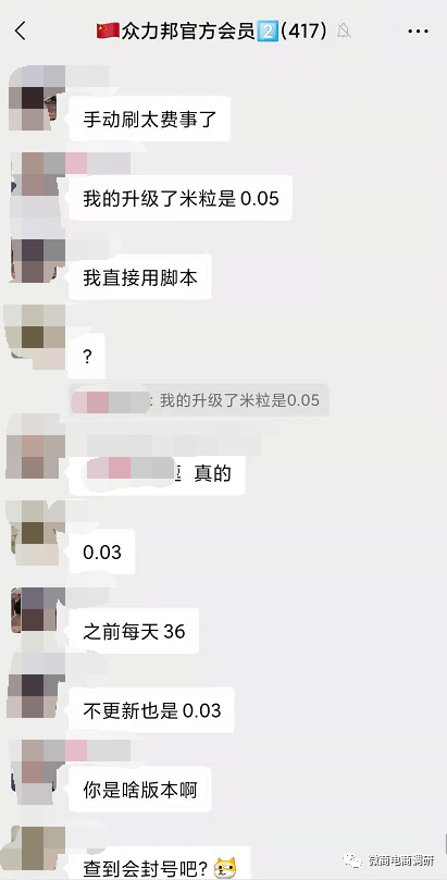 至于以打造“老百姓自己的电商平台”为宗旨的众力邦在今后会如何发展?在众力邦交流群中,一些使用脚本的用户会不会遭到封号处理?官方公众号所晒出的不合时宜的宣传文章,何时才会撤下?对此,微商电商调研将继续保持关注。