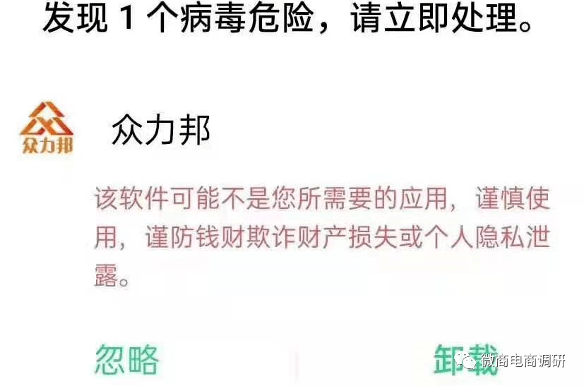 另据有关截图显示,众力邦这款APP还被检测出了病毒风险。