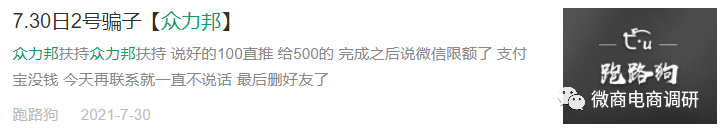 到了7月末,据公众号“跑路狗”发布的文章显示,某个号称可以为众力邦参与者提供扶持政策的推广人员(微信昵称:众邦扶持对接)已被曝光。