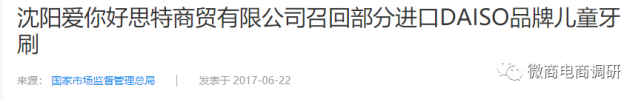 无独有偶,在近年来,由新生活集团(中国)有限公司投资占比约53%的沈阳爱你好思特商贸有限公司也同样因为一些关乎于产品质量的问题而屡上报端,据悉,该公司在2017年曾因其部分进口的DAISO品牌儿童牙刷为磨尖丝牙刷,其非磨尖丝部分刷毛的磨毛合格率未达到强制性国家标准中相关条款要求而被召回产品。