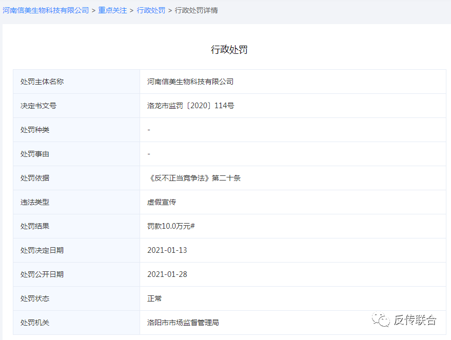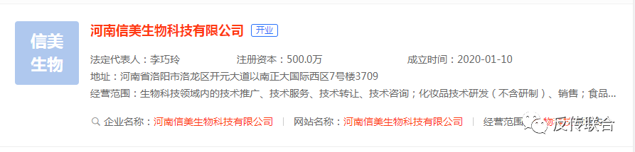 反传销联合会在爱企查了解到,爱茉尔品牌化妆品是河南信美生物科技有限公司旗下产品,该公司成立于2020年1月10日,该企业变更记录4条,风险提示1条。经过前几次变更目前法定代表人为李巧玲也是第一大股东占比90%,第二大股东为刘丹占比10%,注册资本500万。风险提示一条,该家公司在2021年1月13日因虚假宣传受到行政处罚10万元。