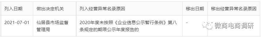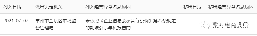 目前,浙江登云小智科技发展有限公司江苏分公司已在2021年7月7日因未依照《企业信息公示暂行条例》第八条规定的期限公示年度报告,而被常州市金坛区市场监督管理局列入企业经营异常名录,且至今未被移除。
