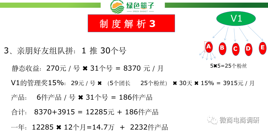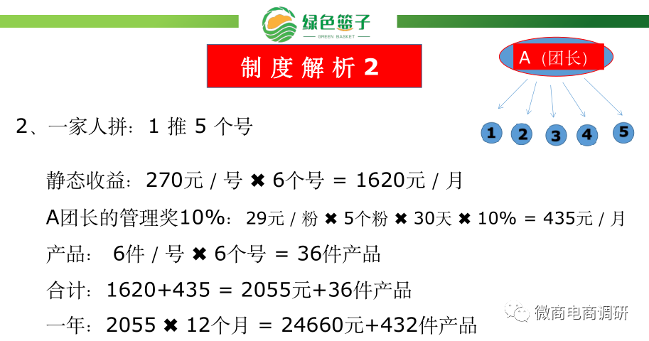 说到绿色篮子现行的奖金制度,推广人员阿力(化名)提供了如下资料:
