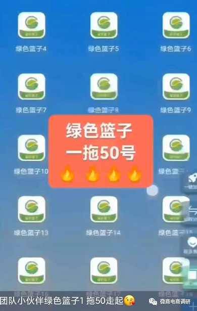 眼下,关于绿色篮子的玩法,除了上文提到的“一家人”、“一拖五”的玩法以外,更有甚者,“一拖五十”的玩法也已出现在了推广人员的朋友圈中。