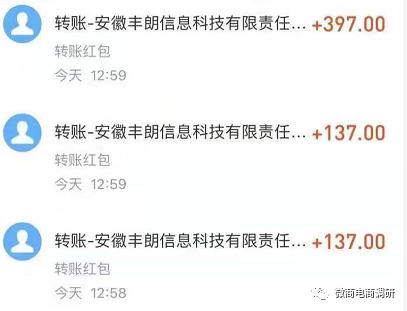值得注意的是,根据推广人员阿力(化名)提供的后台收益截图显示,我们发现该项目实际上的转账单位并非绿色篮子公司或世盟科技公司,而是安徽丰朗信息科技有限责任公司。