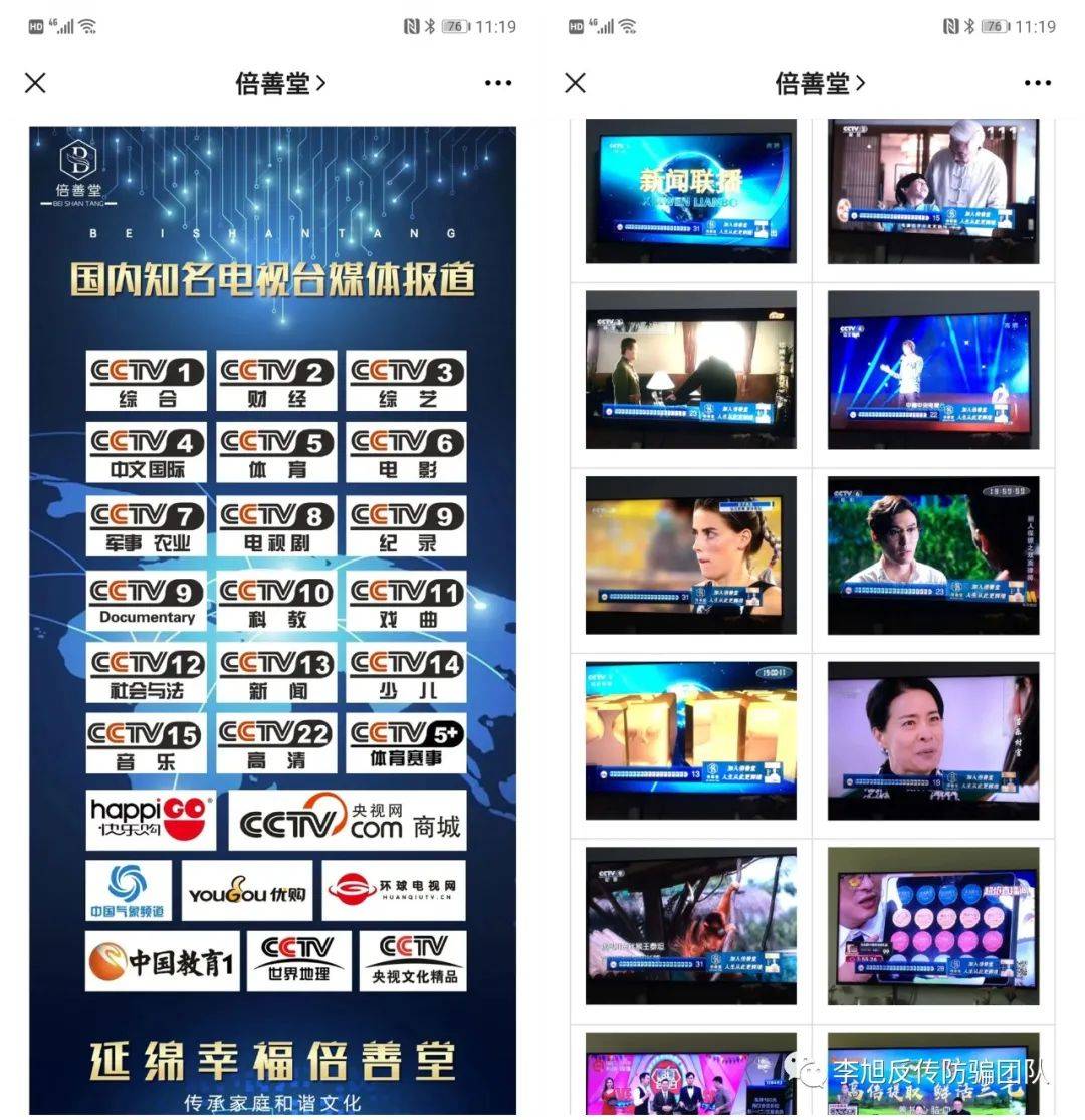除了产品的宣传引起很大歧义,涉嫌虚假、夸大宣传之外。倍善堂还号称在央视各大频道及各地方卫视有广告宣传。