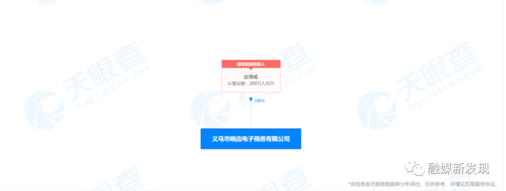 据天眼查APP显示,义乌市响应电子商务有限公司成立于2020年11月6日,注册资本300万元,赵博威担任法人,持股100%。
