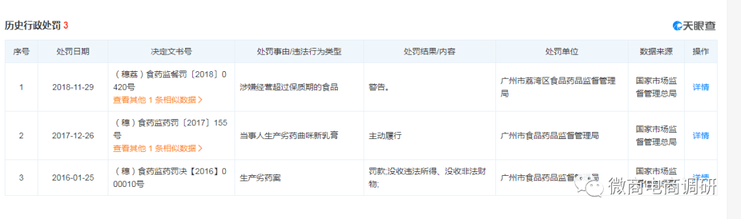 2018年11月29日,何济公药厂涉嫌经营超过保质期的食品,被广州市荔湾区食品药品监督管理局警告。