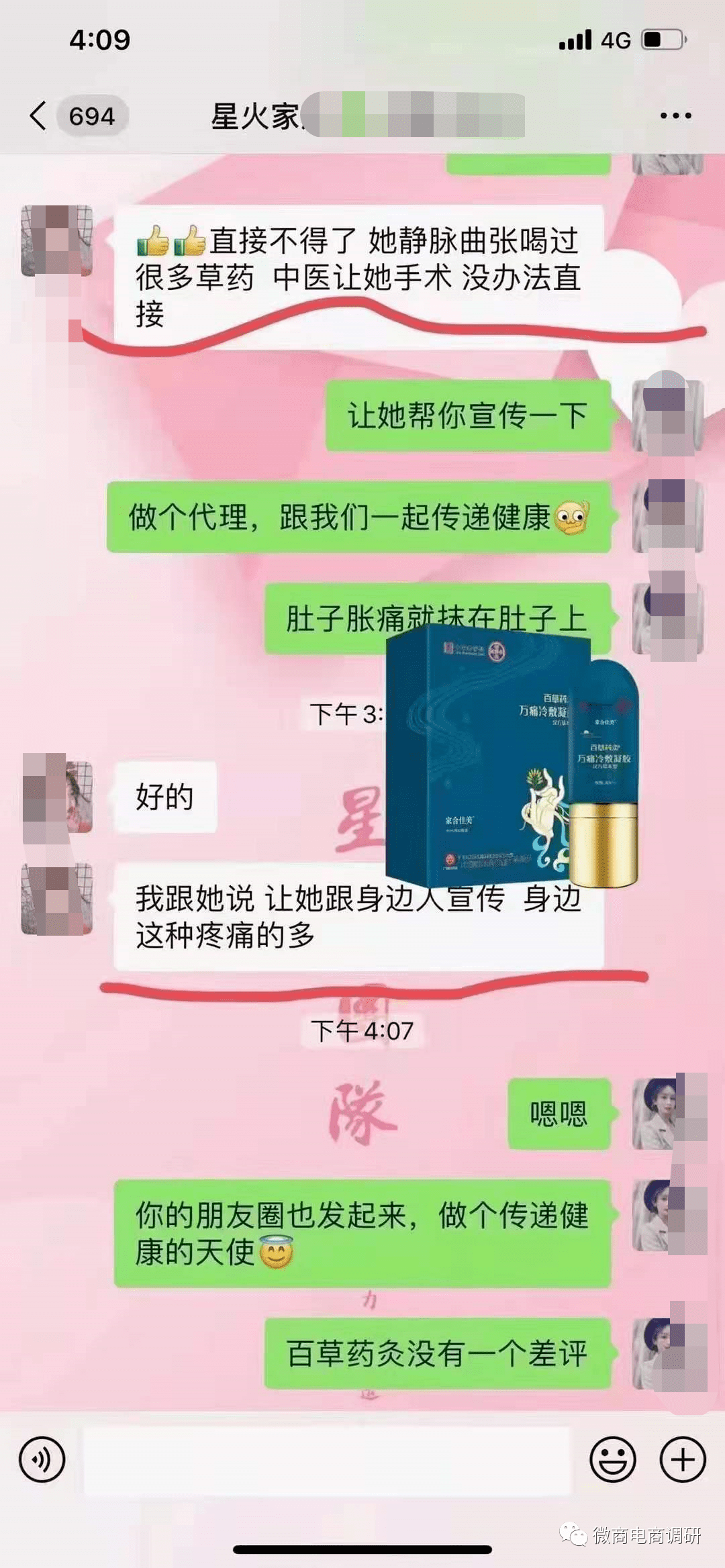 近日,一款名为“百草药灸万痛冷敷凝胶”的产品正在微商圈中盛行。据微商们介绍,该产品是广州白云山医药集团股份有限公司白云山何济公制药厂推出的一款专门针对疼痛疾病问题的产品,使用后不仅可以有效缓解各种身体疼痛,还能补肾壮阳、养护卵巢,甚至可以治疗各种亚健康疾病。