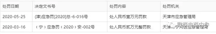 调查发现,该公司在2020年上半年曾连续两次遭到天津市应急管理局和天津市宁河区应急管理局的行政处罚。