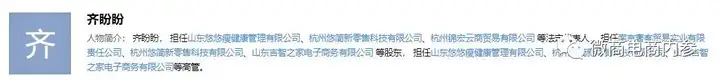 值得一提的是,据爱企查显示,山东悠悠瘦健康管理有限公司的法定代表人齐盼盼目前还是杭州悠简新零售科技有限公司的法定代表人。关于齐盼盼和悠简,头条资讯平台曾在《从纤细佳人到悠简,娃哈哈卖的减肥奶昔是否换汤不换药?》中有过提及,此处不多赘述。