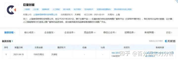 根据第三方查询我们可以知道,巨量创客的运营主体公司叫上海奥旭网络科技有限公司,这家公司也是今年才刚刚成立,这个巨量创客还搞了个天使轮,背后投的是一个叫N&C资本的投资基金,这个N&C资本就很有意思了,前面投了一个叫阿里推推的资金盘,今年早些时候就崩盘跑路了,受害者众多,然后这个巨量创客的公司就成立了,阿里推推和巨量创客都是搞得签约模式,一模一样。