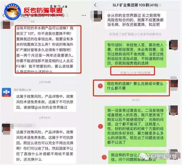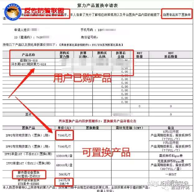 将用户原本购买持有的BTC/ETH矿机置换成IPFS,要求用户高于市场价购买FIL,实则掩饰曾经虚假算力、无法兑付的行为