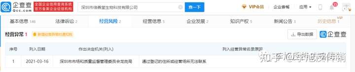 此外,李旭反传销团队了解到,倍善堂公司于2021年3月16日,因通过登记的住所或经营场所无法联系而被深圳市市场和质量监督管理委员会龙岗局列入经营异常名录。