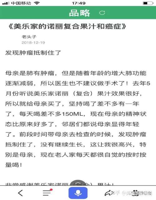 美乐家的产品共分为四大系列,第一大系列是家用清洁系列。第二大系列是营养辅助食品系列。第三大系列是水贝娜肌肤美容保养系列,第四大系列是优植生活身体保养系列。主打着环保健康财富自由吸引人群。每个系列都有很多的热门单品,其中比较热门的一款单品诺丽复合果汁宣称具有治癌治糖尿病等的功效。以下是诺丽复合果汁治疗肿瘤的一个案例,一位女士介绍说自己的母亲患有肿瘤,喝了诺丽果汁一年肿瘤居然抵制住了。不过从网上搜索美乐家可以看到很多网友的投诉,美乐家的保健品不仅不能提高免疫力,孩子服用后出现了上吐下泄、腹部阵痛的情况。号称环保的洗衣液,泡沫很大,洗衣机清洗四五遍还是有泡沫。润肤水包装瓶有缺陷,不能随身带,平放会溢出等等。有网友还介绍说家乐美的保健品是没有通过国家检测的,所以干脆以食品的形式出售。实际包装因为没有保健品资质所以不敢写功效,功效基本都是会员鼓吹拉人的。