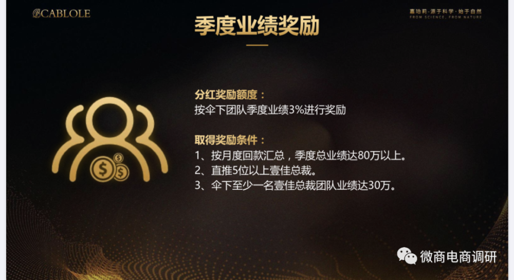 说完了产品,接下来,我们再来了解一下嘉珀莉现行的奖金制度,据经销商小燕介绍,在嘉珀莉创业,其实是属于“负风险”性质的。