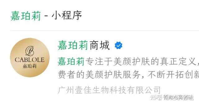 虽然微信公众号的认证主体是广州壹佳美业科技有限公司,但微信小程序“嘉珀莉商城”的运营主体却是另一家企业:广州壹佳生物科技有限公司。