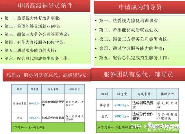 政策B:学员报名培训须签订培训协议;自愿从事辅导员和高级辅导员做推广服务的学员须和众包公司签署用工协议;高级辅导员招工条件:成功完成10名学员的直推辅导,获得行业内视力修复指导师认证。