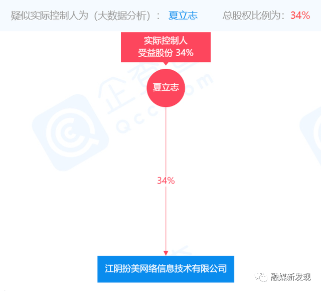 据企查查显示,江阴扮美网络信息技术有限公司成立于2015年11月6日,注册资金1000万元人民币,实缴资金235万元。夏立志为公司的法定代表人,同时也是公司的大股东及实际控制人。根据股权结构显示,夏立志持股比例为34%。