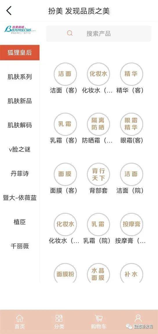 此外,企查查显示,江阴扮美网络信息技术有限公司旗下拥有“扮美商城app”。据介绍,扮美是一家美容行业垂直移动互联网企业。据该商城以经营美容护肤品为主,显示有“狐狸皇后”系列面露和面乳,此外还有“V脸之谜”、“丹菲诗”、“植臣”等品牌化妆护肤系列产品。
