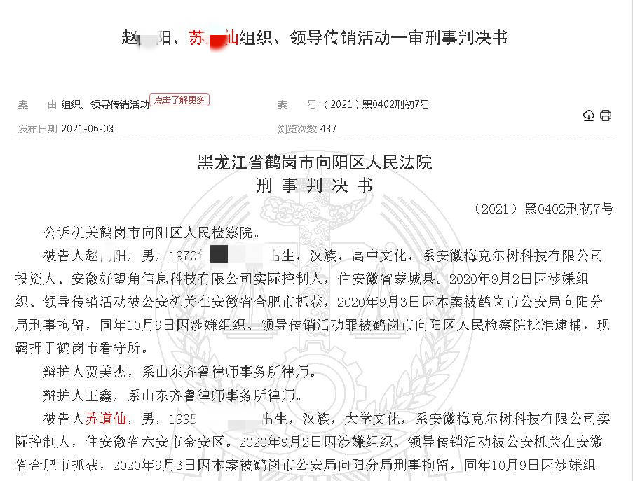 二、被告人苏道仙犯组织、领导传销活动罪,判处有期徒刑五年,并处罚金人民币500000.00元。