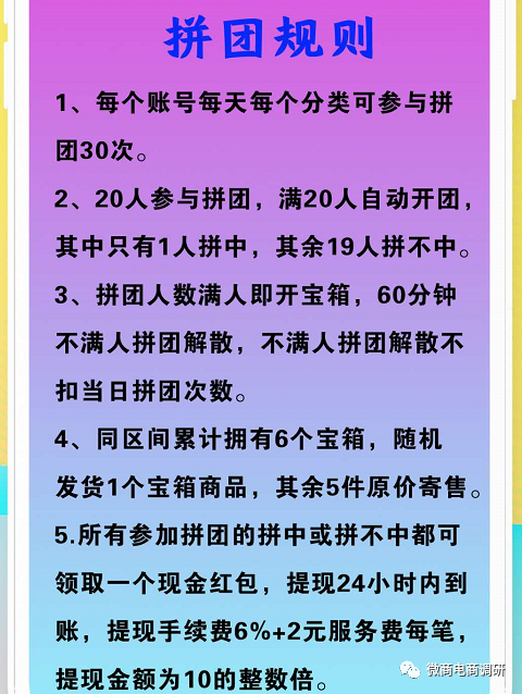 对于近段时间走红网络的拼团模式,本平台也请到了行业专家进行分析,该专家指出:“十拼三或七拼二,拼中给商品,不中给出资额的5%到8%红包奖励,这类的是相对靠谱的。凡是给的红包奖励低,必然是把资金挪到后面多层次团队计酬的奖金拨比去了。”
