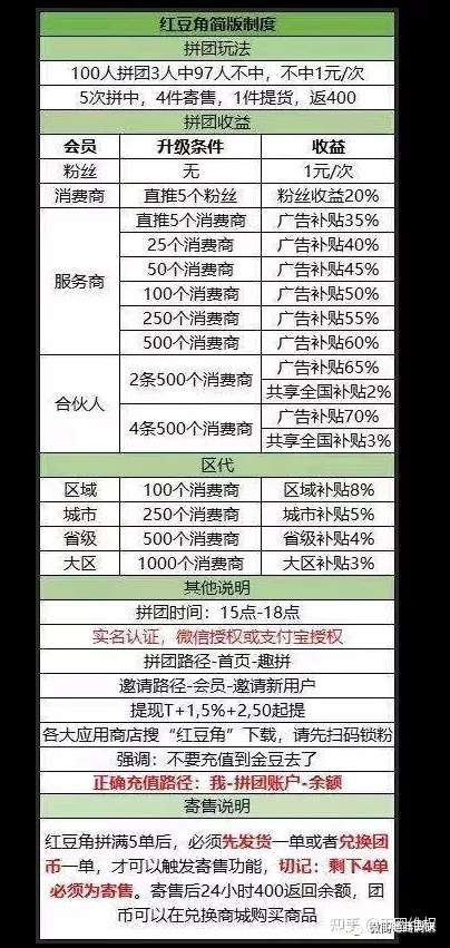 公众号“刘莹钰”近期在题为《拼团届——高危名单(九月初)必看》的文章中对红豆角趣拼更是有过详细的总结:最近整个圈子里的流量,它占了有十分之三,宣称是中国电信旗下(是否挂名有待考究),这个项目方此前是做直播平台的,目前开始转来做拼团,以电信为背书。参考此前哇沃拼团(打着联通公司的旗号,最后被联通起诉) ,公司是一个公司,某一个单独分割出来的部门接的私活。目前这个软件只有4件商品,质量可以说是非常的劣质,可以看出项目方是第一次开盘,这样的项目方对于韭菜是非常危险的,随便一个制度的出错都会导致项目的崩盘。关于红豆角的背景真伪还在考察,建议韭菜目前勿急上车,如果是个长盘,等待项目方成熟以后进场,如果是个短盘,项目方没运营经验,最后伤害的还是芸芸韭菜,目前观望。