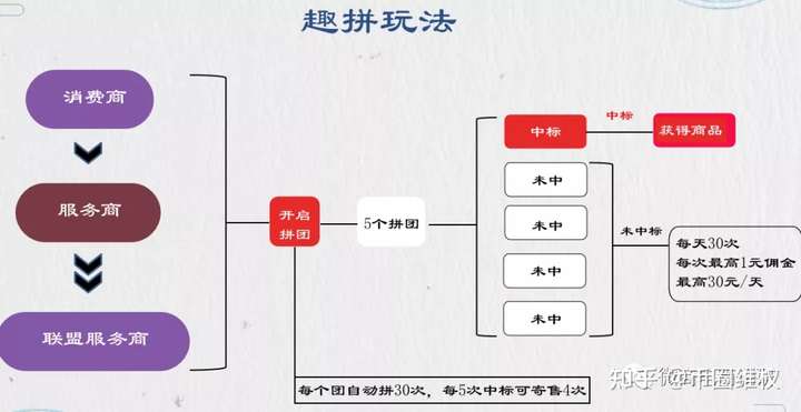 7、根据平台大数据统计,一般拼中5次的周期约为4-8天,1个月持续参团将获得平台红包补贴收益约在200-500元之间;还额外可免费获得5-6件商品及佣金。免费拿商品的还有合伙人,第一级合伙人,含2个500及以上消费商团队的,粉丝广告补贴65%,团队广告补贴5%,共享全国补贴2%;第二级合伙人,含4个500及以上消费商团队的,粉丝广告补贴70%,团队广告补贴5%,共享全国补贴3%。